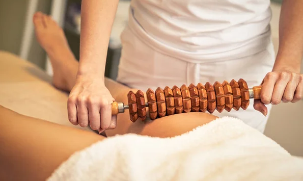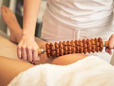 Massage drainant à l'aide d'instrument en bois 100% naturel et anti-cellulite.